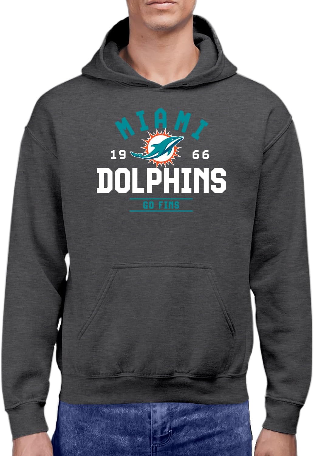 Hybrid Sports NFL - Miami Dolphins - Team Motto - Men's and Women's Pullover Hooded Fleece Sweatshirt - Size Large - Grey