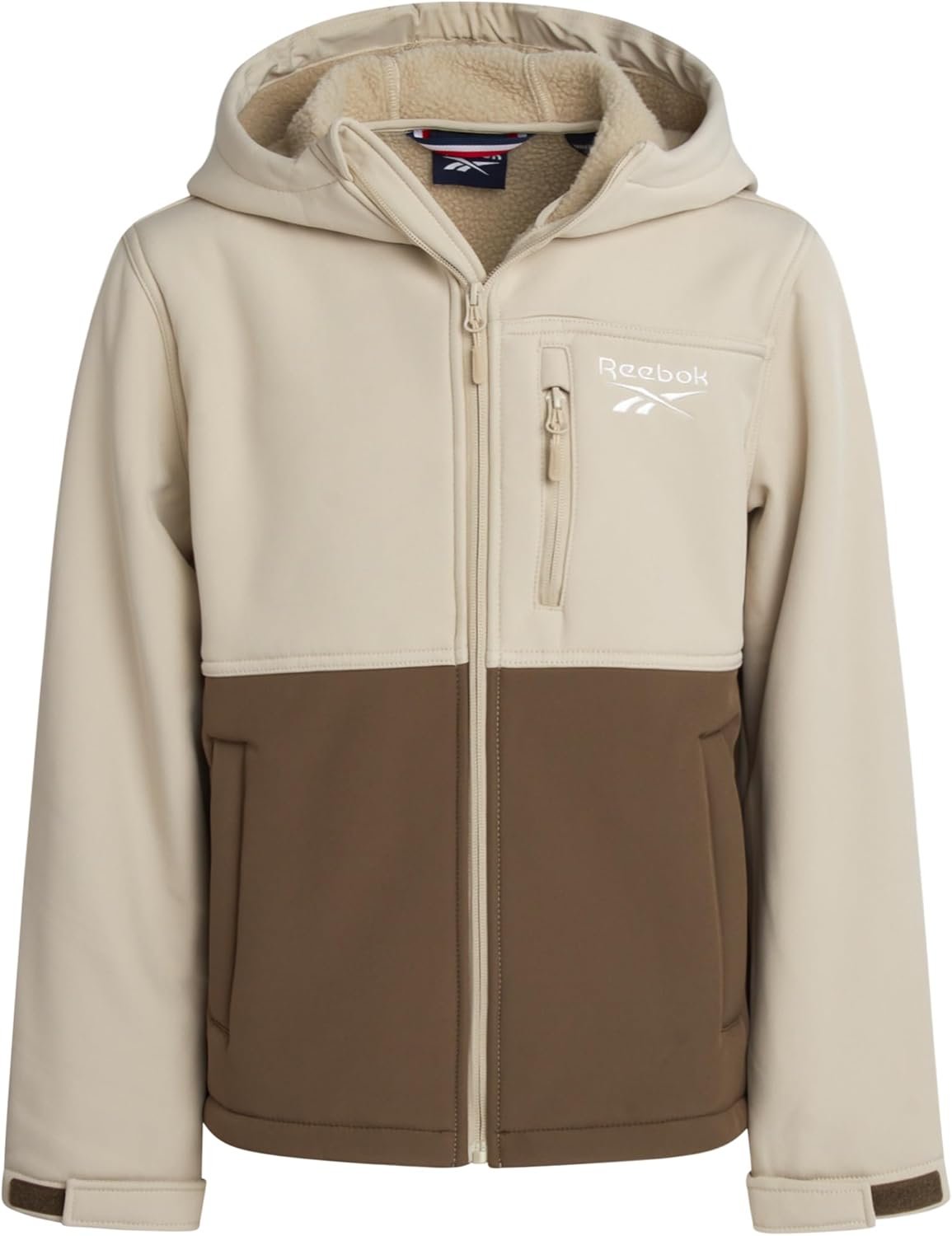 Reebok Boys Softshell Jacket - Soft Cozy Brushed Sherpa Fleece Lined Softshell Winter Coat Hooded Windbreaker Jacket for Boys