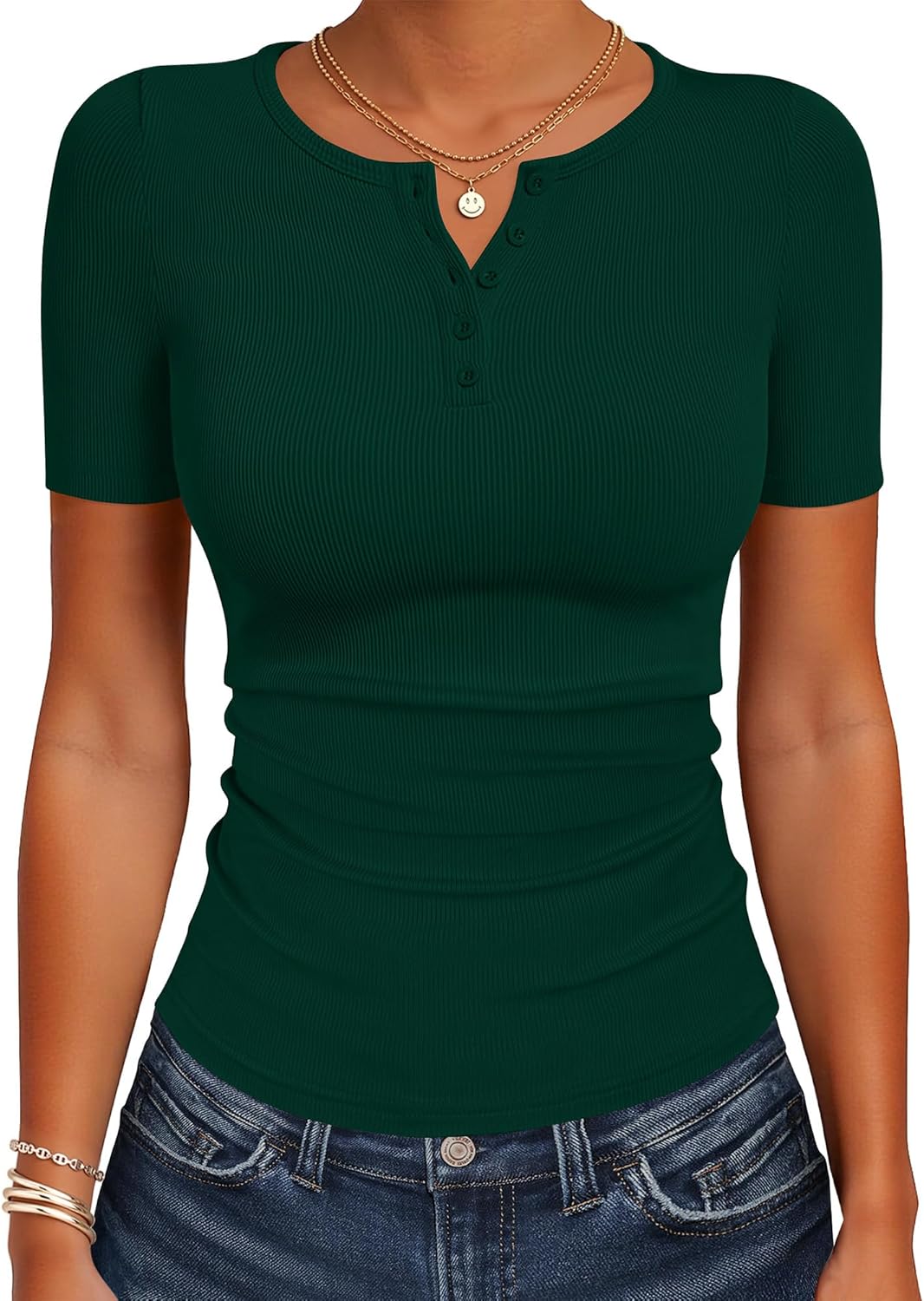 ANRABESS Womens Tops Short Sleeve Henley Shirts 2026 Summer Ribbed Slim Fit Basic Casual Tee Blouse Trendy Spring Clothing
