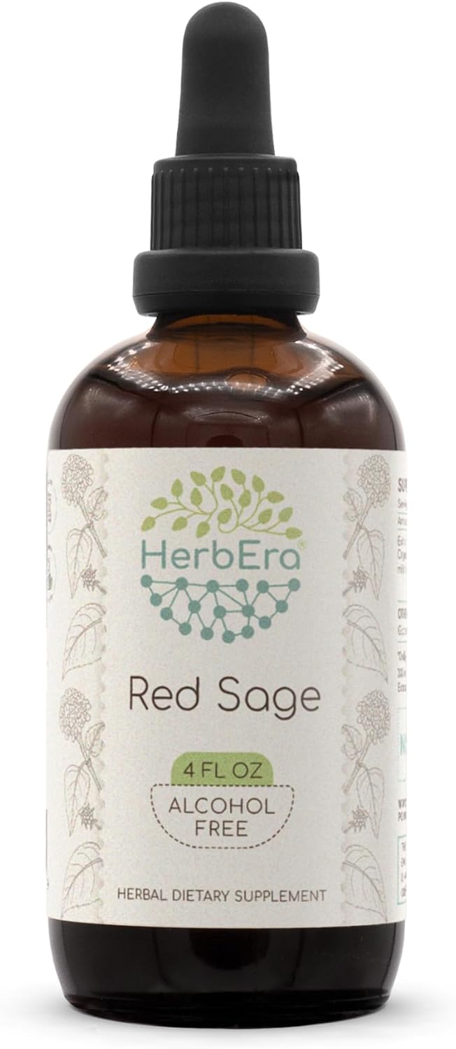 HerbEra Red Sage B120 Alcohol-Free Herbal Extract Tincture, Concentrated Liquid Drops Natural Red Sage (Salvia Miltiorrhiza) 4 fl oz
