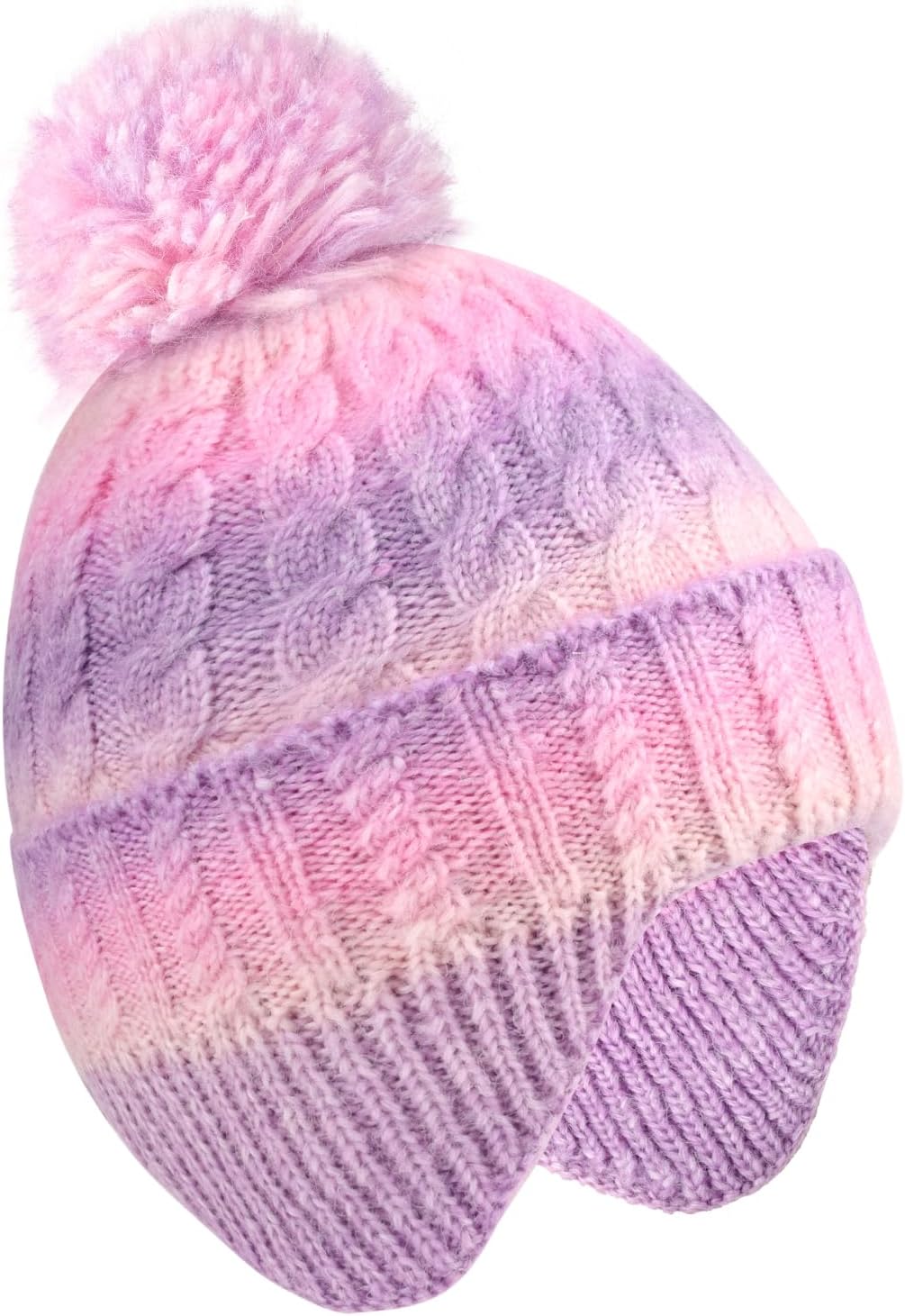 Girls Boys Knit Winter Beanie Hat with Earflaps - Colorful Warm Fleece Lined Hat for Kids Ages 3-12
