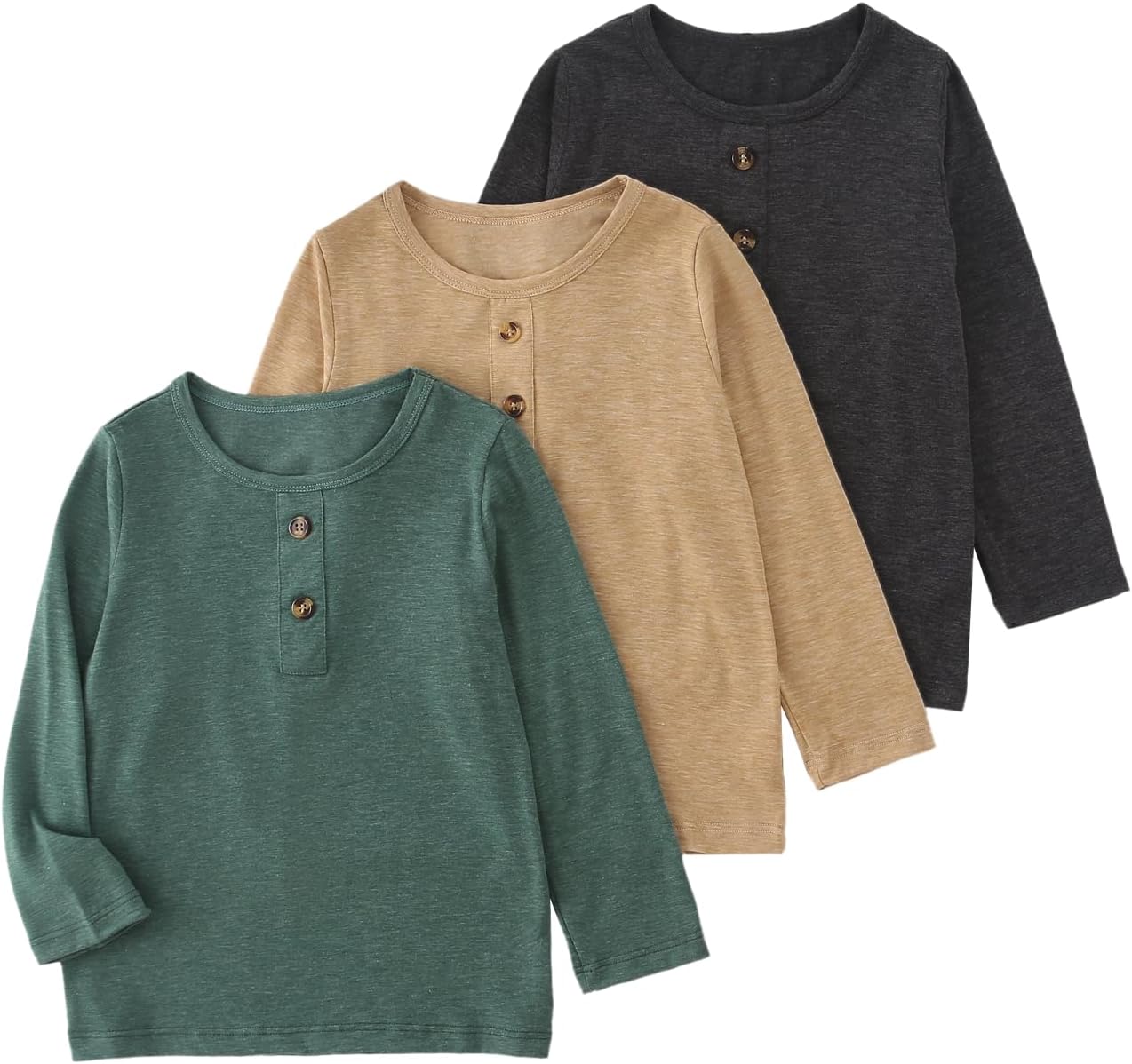JOLYSHID 3 Pack Boys Long Sleeve Tee Soft Crewneck Basic Tops Henley Shirt Solid Colors Shirts 4-12Y