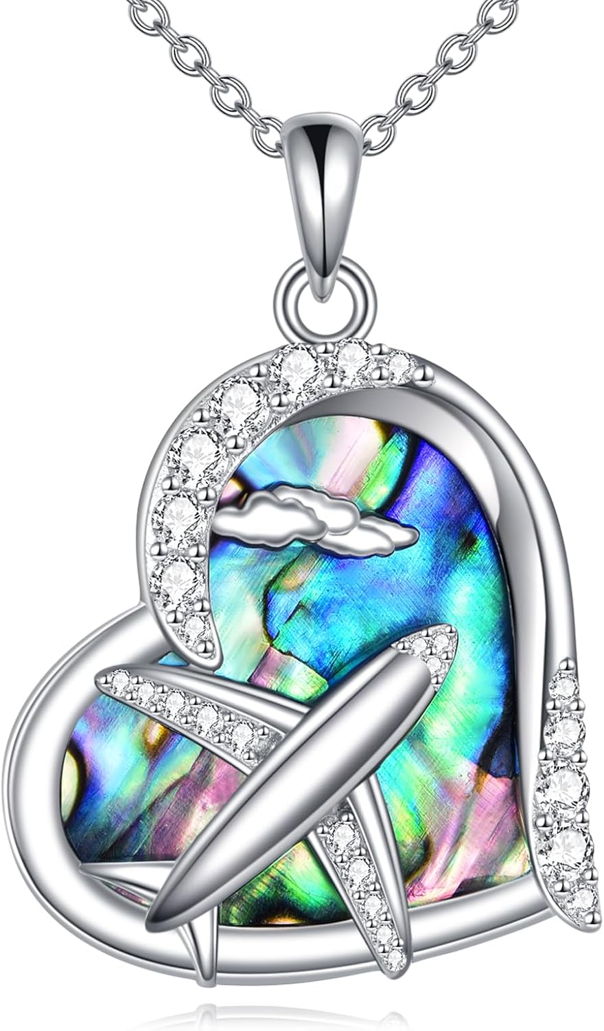 Airplane Necklace 925 Sterling Silver Abalone Shell Airplane Necklace Airplane Jewelry Gift for Women Airplane Lovers