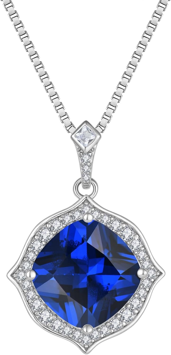 Halo Solitaire Pendant Necklace 925 Sterling Silver Gemstone Necklace Princess Cut Birthstone Jewelry for Women