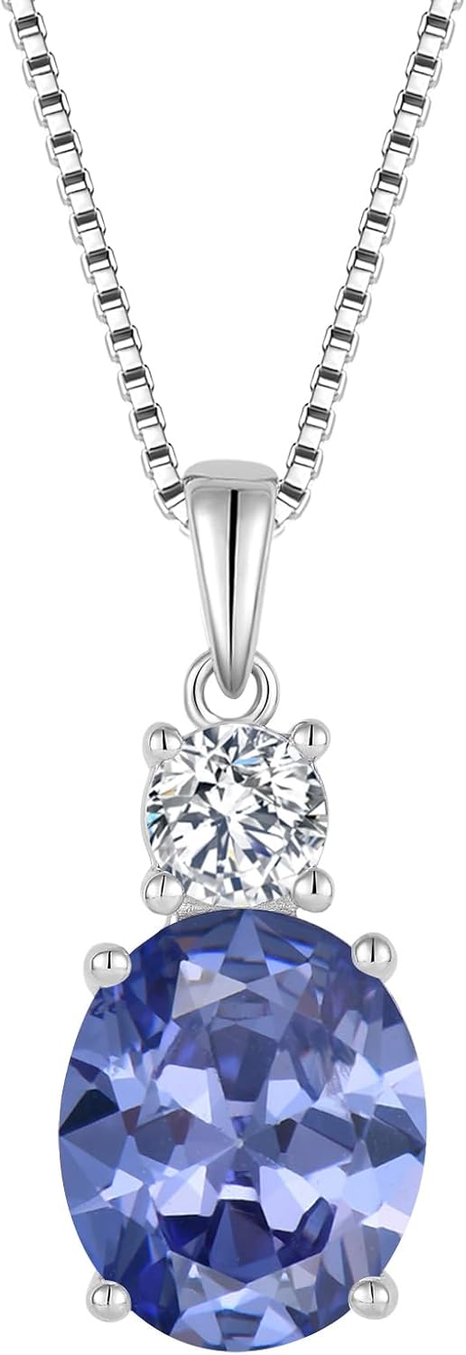 Birthstone Necklace for Women 925 Sterling Silver Oval Cut Cubic Zirconia Pendant Jewelry for Her