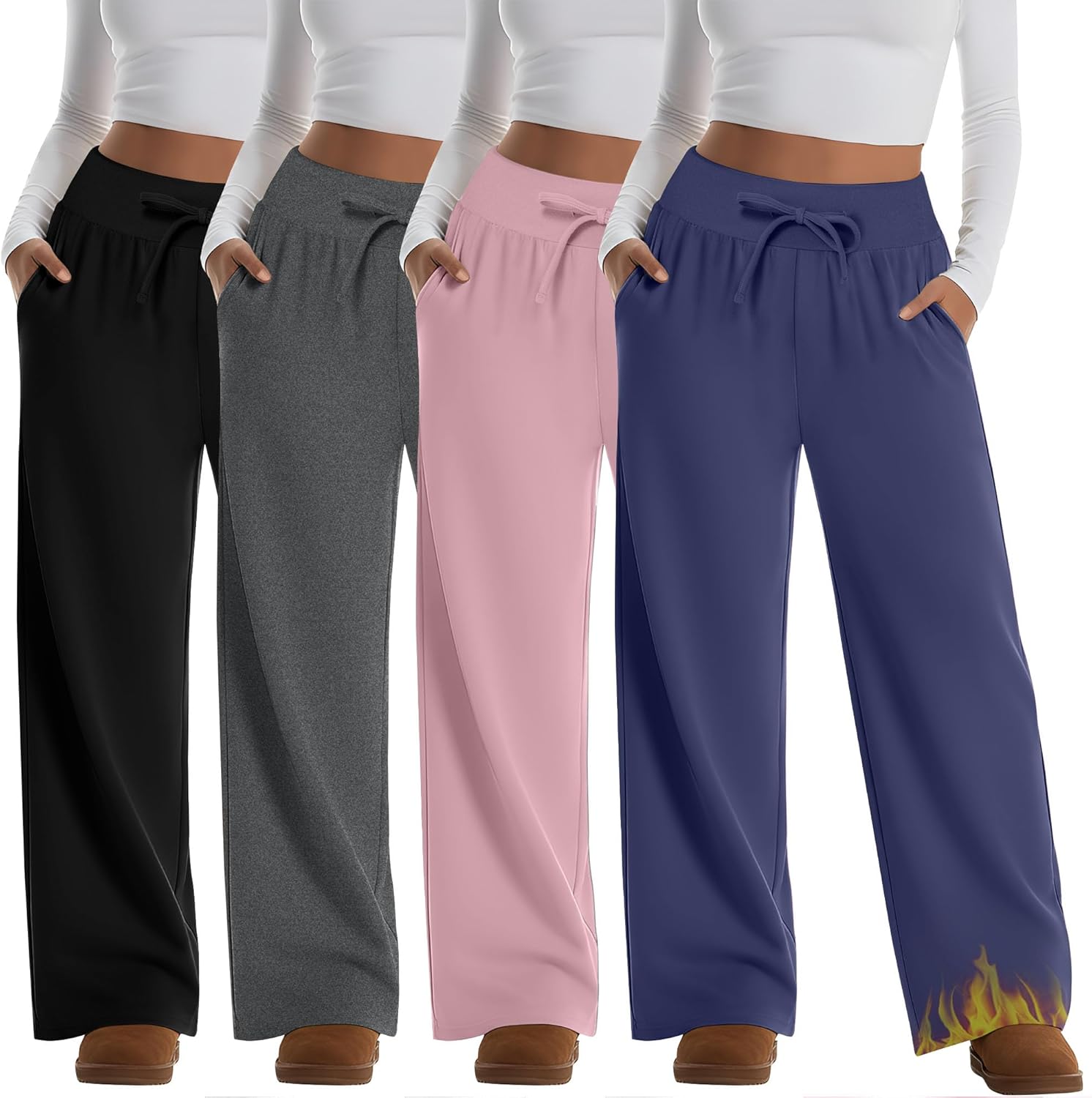 4 Pack Women's Fleece Lined Plus Size Sweatpants Wide Leg Lounge Pants Baggy Thermal Athletic Pants