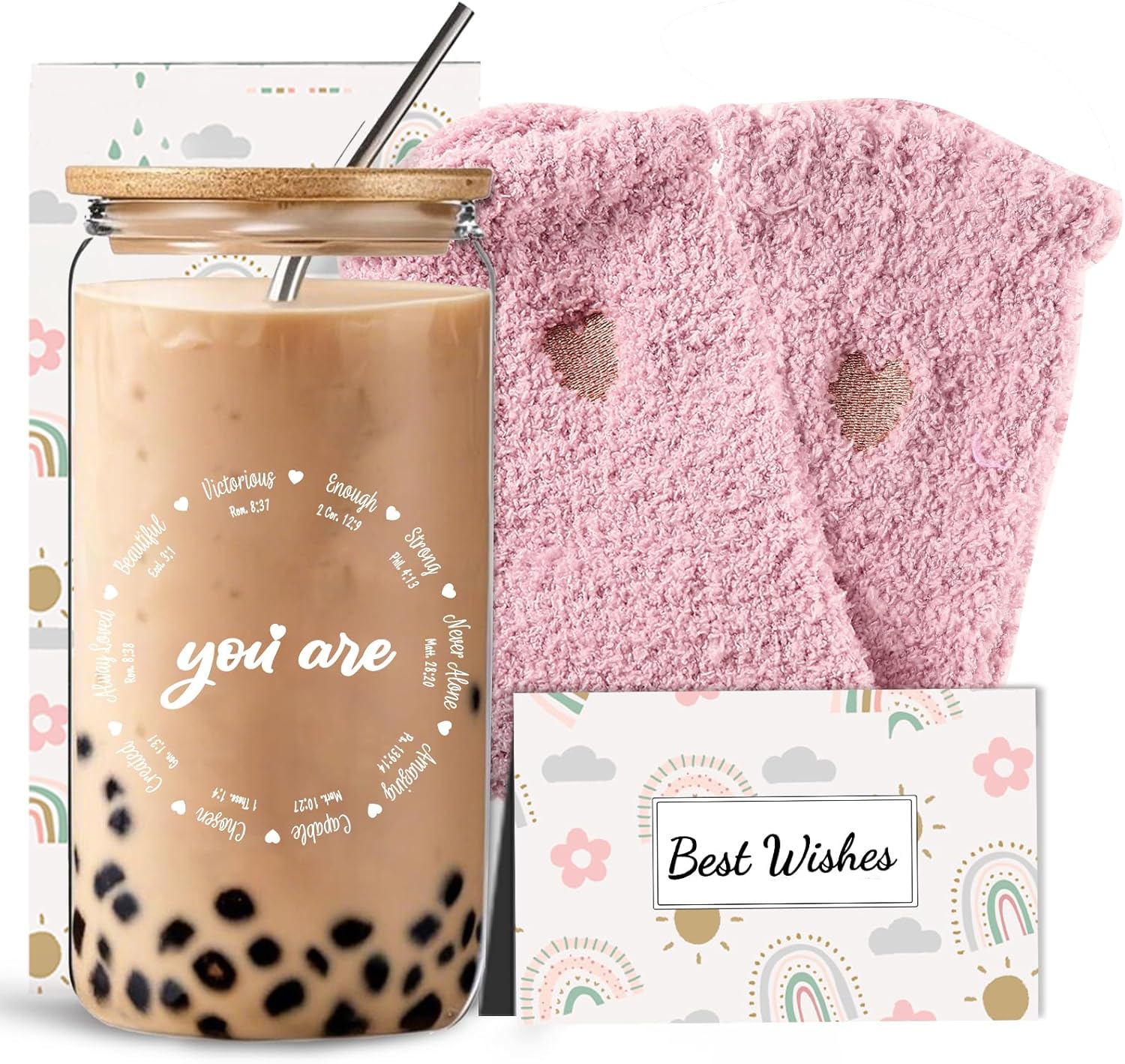 - Religious Gifts Set: The gift box includes a 16oz glass cup and a pair of socks, making it a simple yet practical gift perfect for minimalist Christians. This gift is the perfect way to express your love and blessings for her