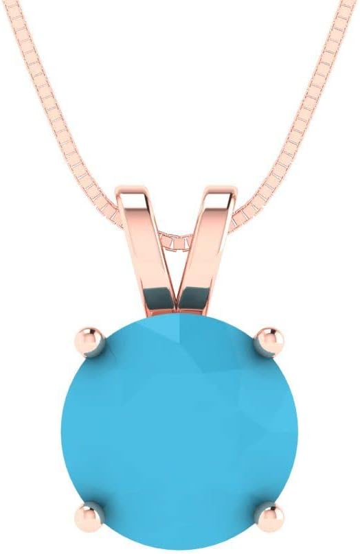 Clara Pucci 2.5 cttw Turquoise Rose Gold-Plated Silver Necklace and Pendant for Women (16" Box Chain,Round Cut,9mm)