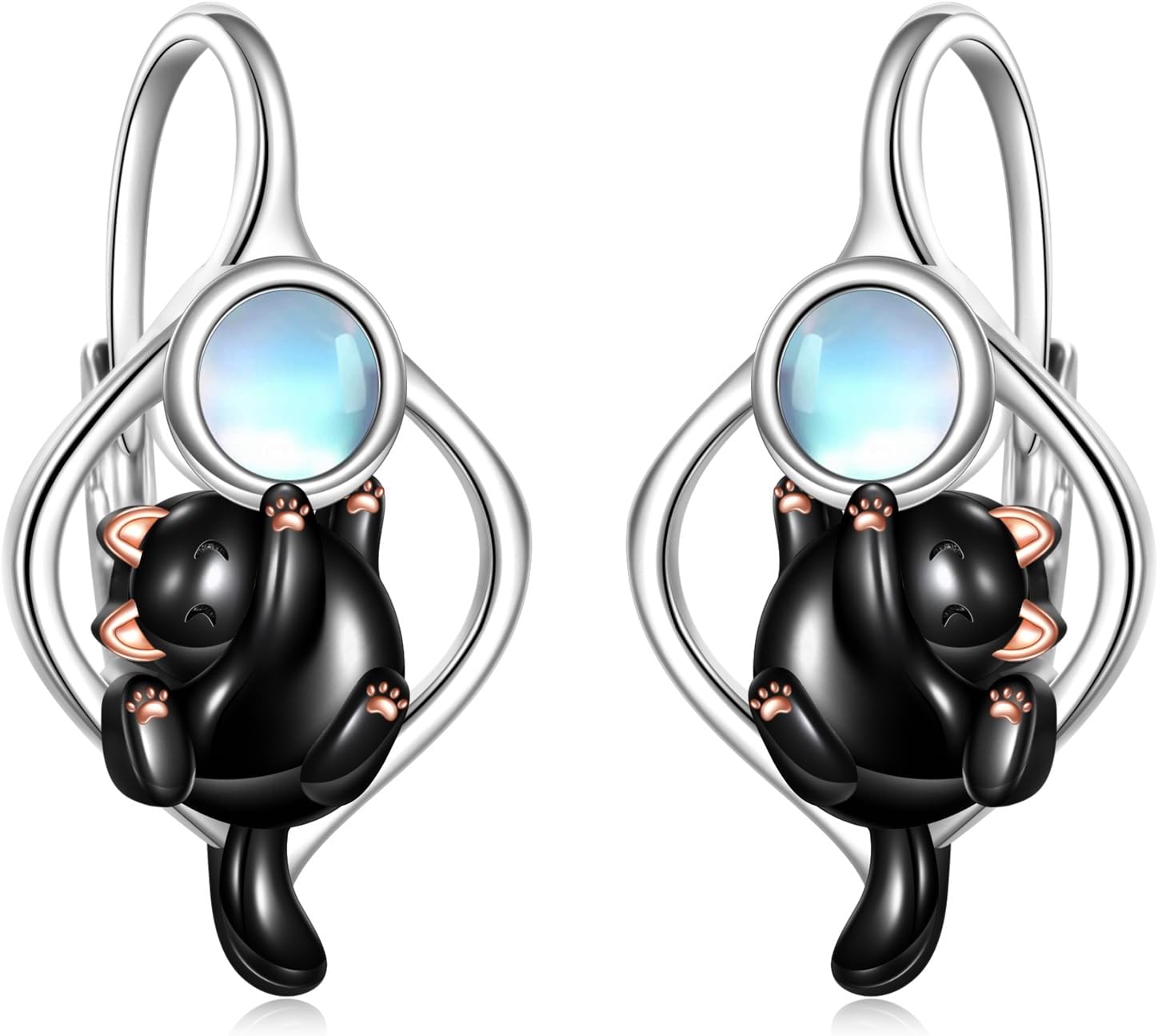 Panda/Wolf/Cat Earrings 925 Sterling Silver Moonstone Cute Animal Hoop Earrings Teardrop Jewelry Gifts For Women