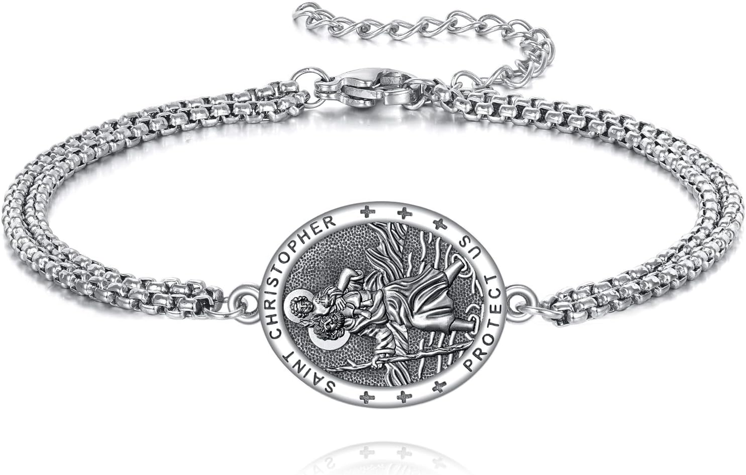 Religion Bracelet 925 Sterling Silver Saint Christopher/Saint Jude Medal Bracelet Protection Jewelry for Men Women Christmas Gift