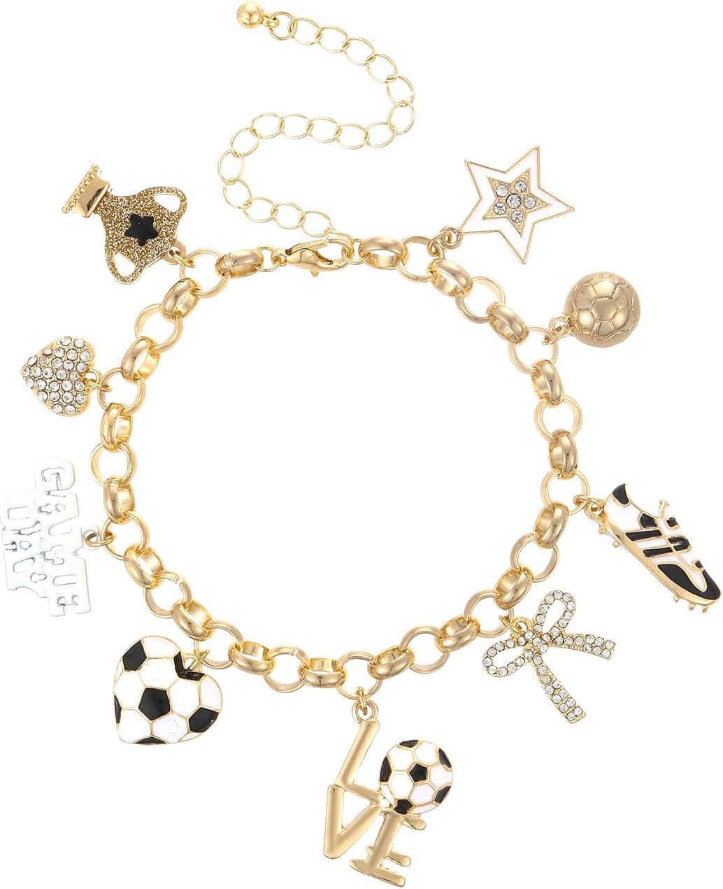 Madison Tyler Soccer Bracelet for Women | Jersey Bow GOAL Sneaker Trophy Sport Charm Bracelet for Women | Cute Game Day Adjustable Bracelet Jewelry