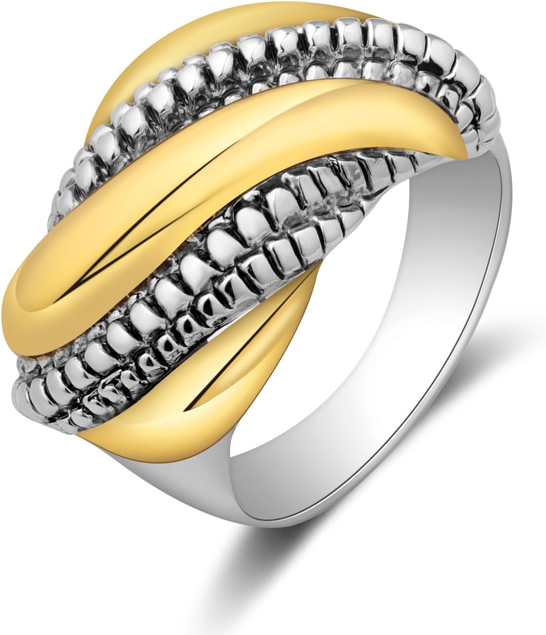 Gold and Silver Rings for Women, Fashion Two Tone Statement Cable Ring Gold Knot Criss-Cross Vintage Mixed Metal Band Jewelry for Her