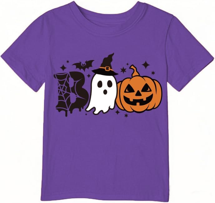 Spooky Party Shirt Toddler Boys Girls Pumpkin Truck Ghost Spider Web Short Sleeve Kids Top for 2-7t