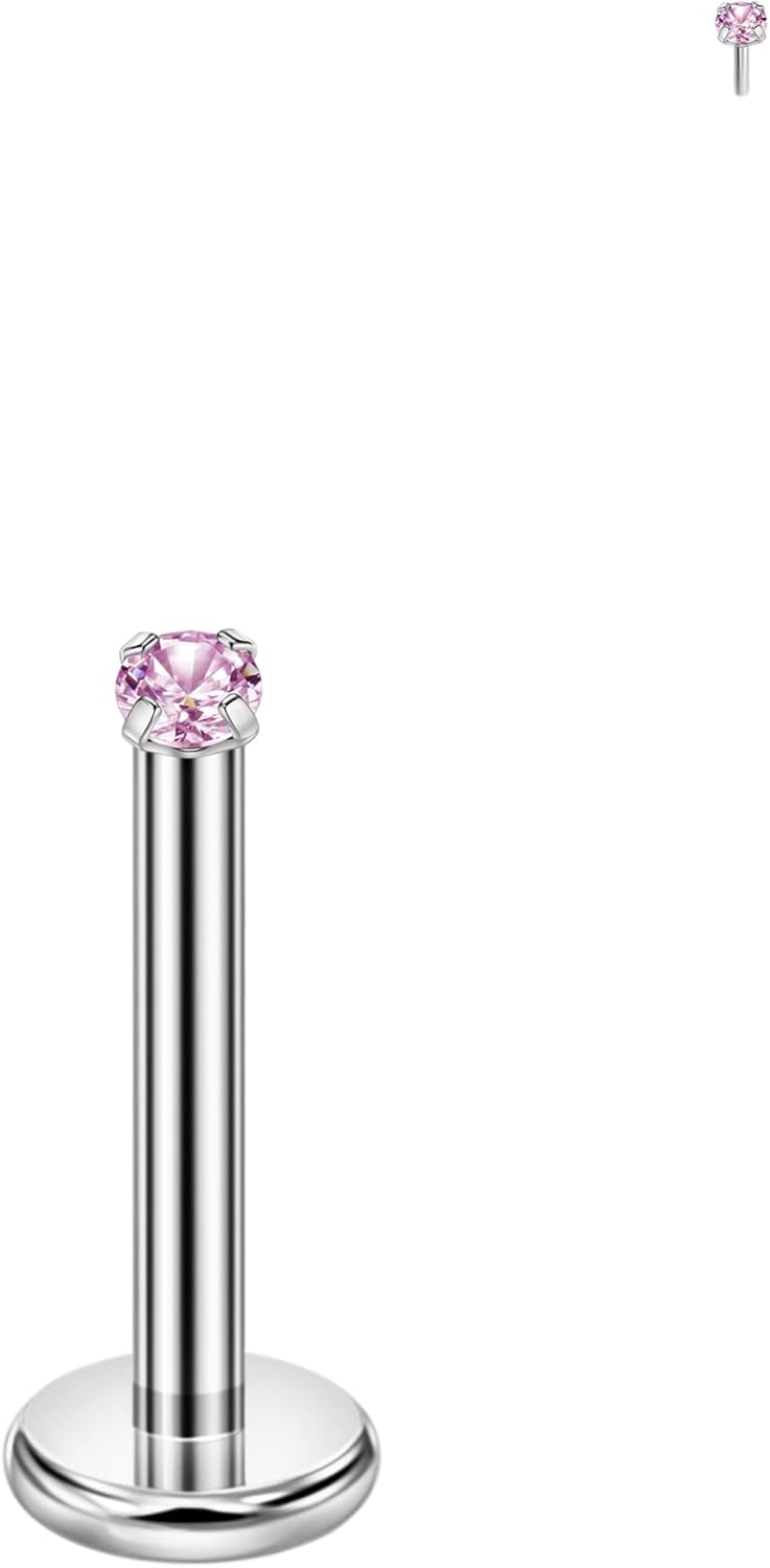 FANSING Single 316L Surgical Steel Threadless Labret Stud with CZ for Nose Cartilage Helix Rook Conch Tragus Earlobe Piercings