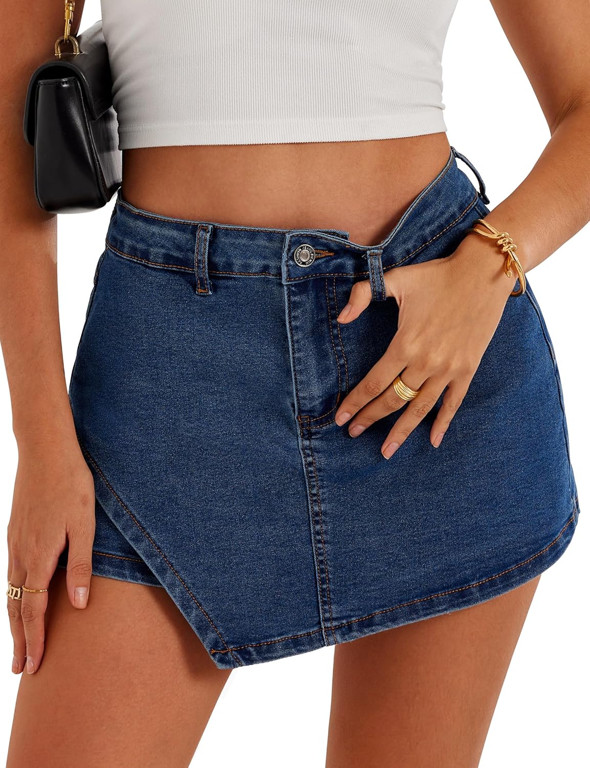Denim Skorts Stretchy High Waisted Jean Shorts for Women Trendy Sumemr Mini Jean Skirt with Shorts Underneath