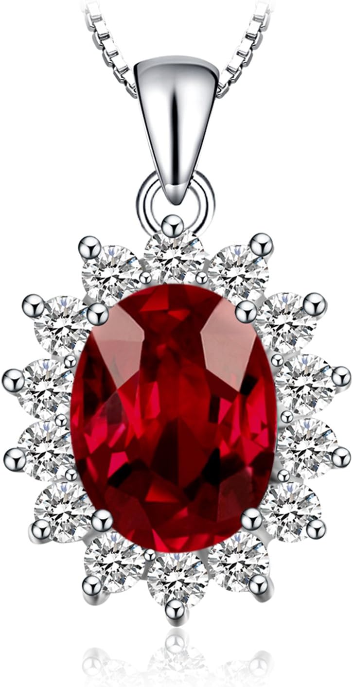 JewelryPalace Princess Diana Kate Middleton Natural Amethyst Citrine Garnet Peridot Topaz Created Ruby Sapphire Simulated Emerald Pendant Necklace for Women, 925 Sterling Silver Gemstone Jewelry Set