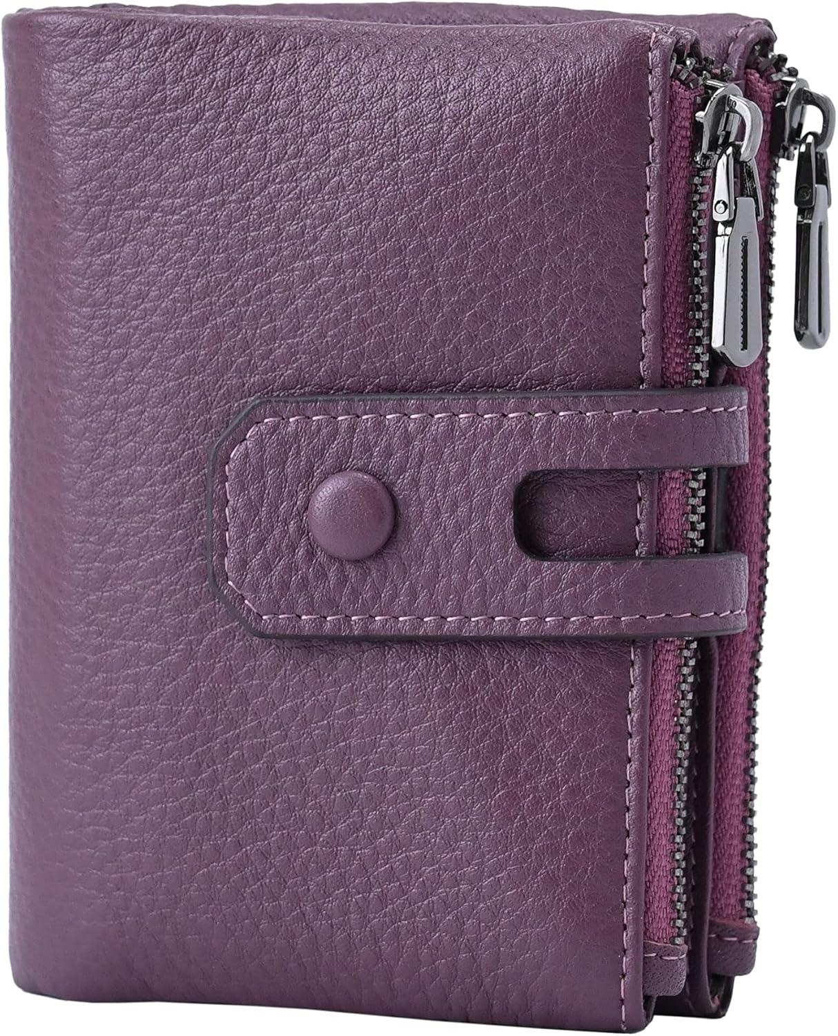 Bveyzi Small Soft Leather Wallet for Women RFID Blocking Ladies Card Holder with Double Zipper Pocket