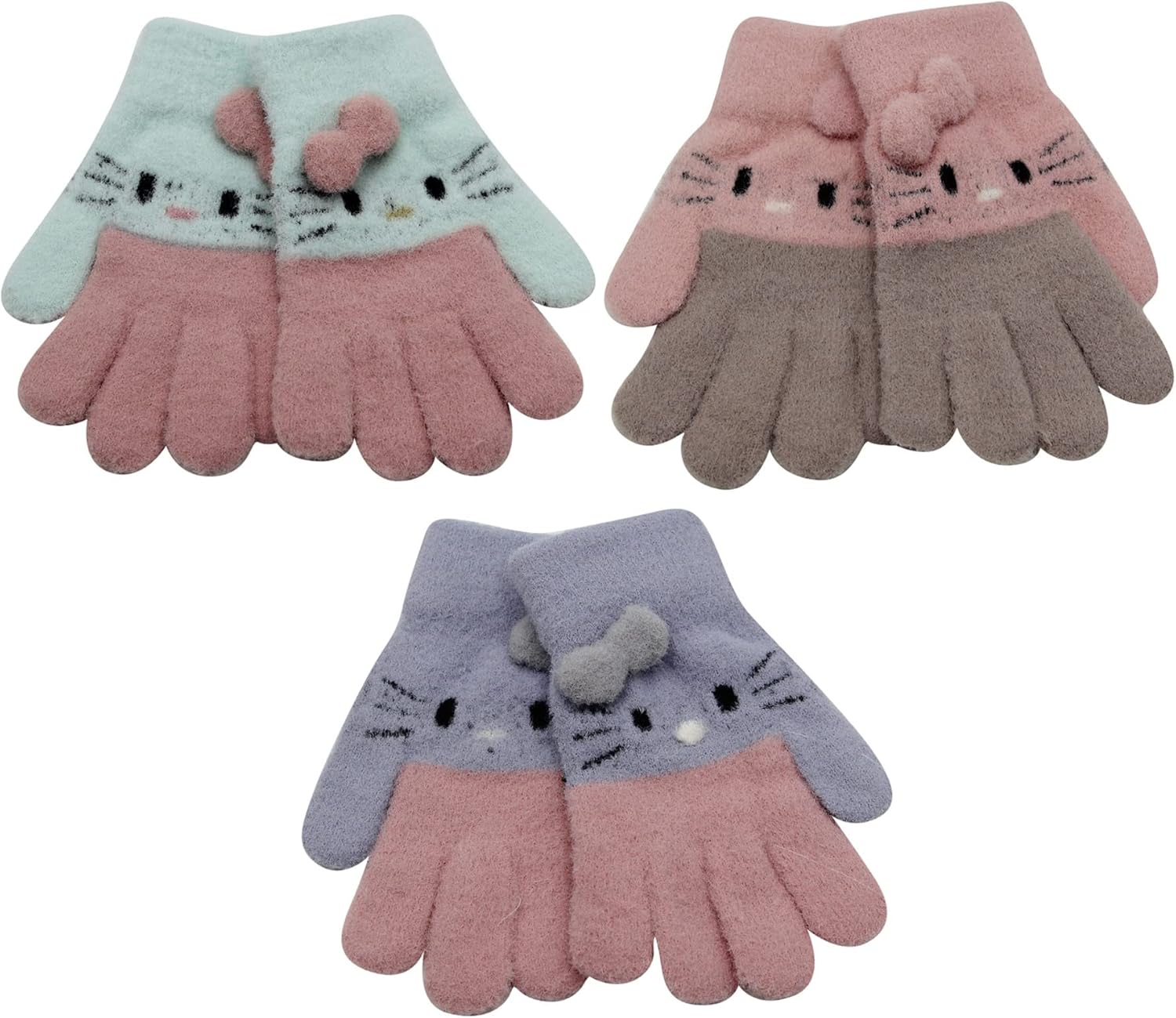 RARITYUS 2 or 3 Pairs Kids Cute Cat Warm Gloves Winter Knitted Mittens for Boys Girls Toddler 0-15 Years old