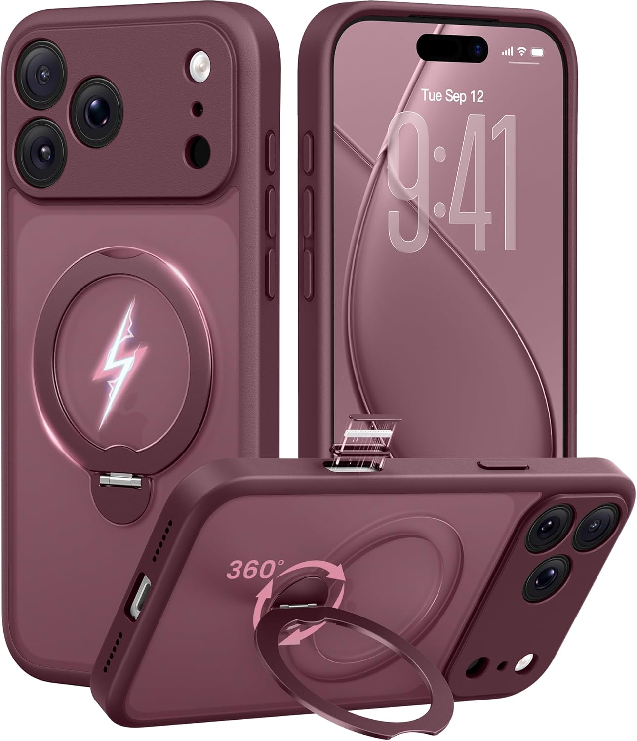 ![GolbinBox 360° Spin Magnetic Stand for iPhone 17 Pro Case, [Compatible with MagSafe] [Full Camera Protection] [16FT Military Drop Protection], Silm Translucent Matte Phone Case, Wine Red - Image 2](https://m.media-amazon.com/images/I/71MKzMqwe+L._AC_SL1500_.jpg)