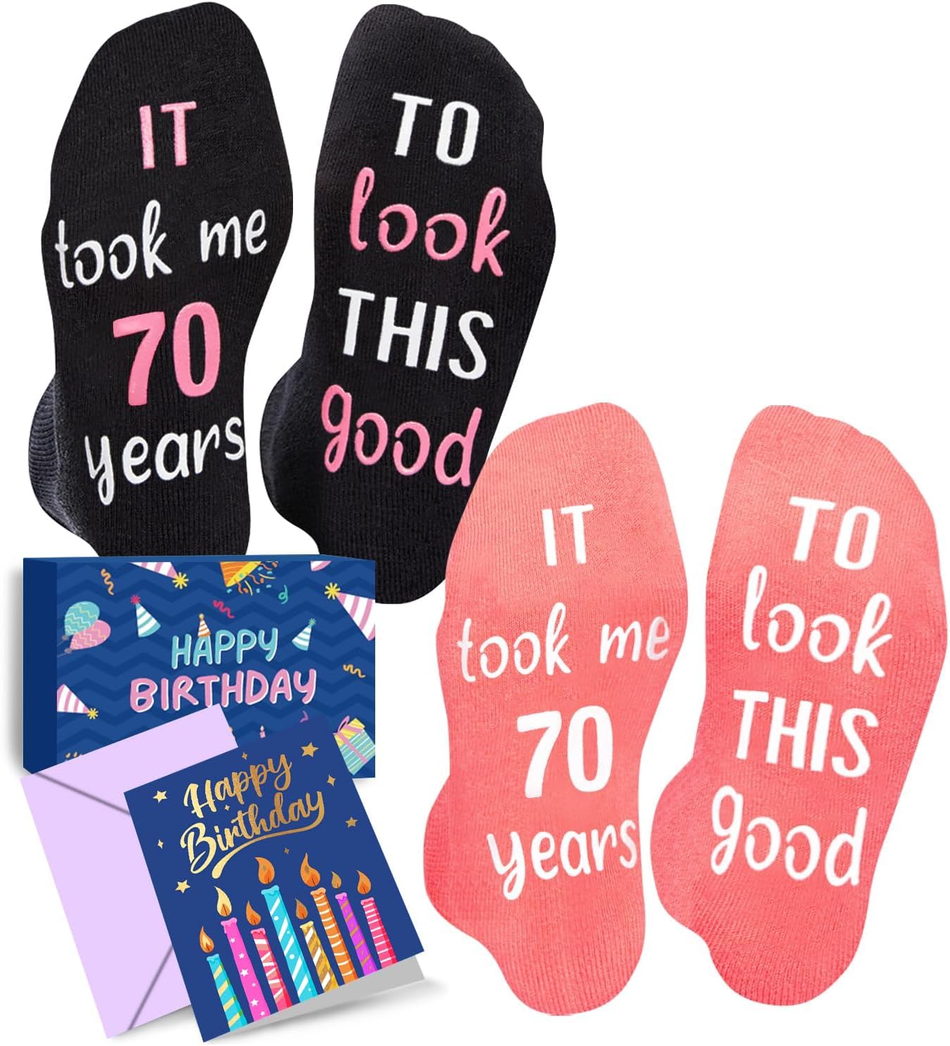 HAPPYPOP Birthday Gifts Ideas - Women 35-50 Year Old Socks, 55-80 Year Old Bday Gifts 2 Pack