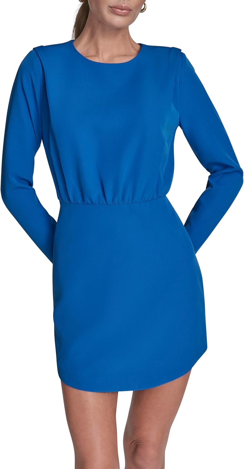 BCBG Womens Long Sleeve High Neck Blouson A-line Mini Dress