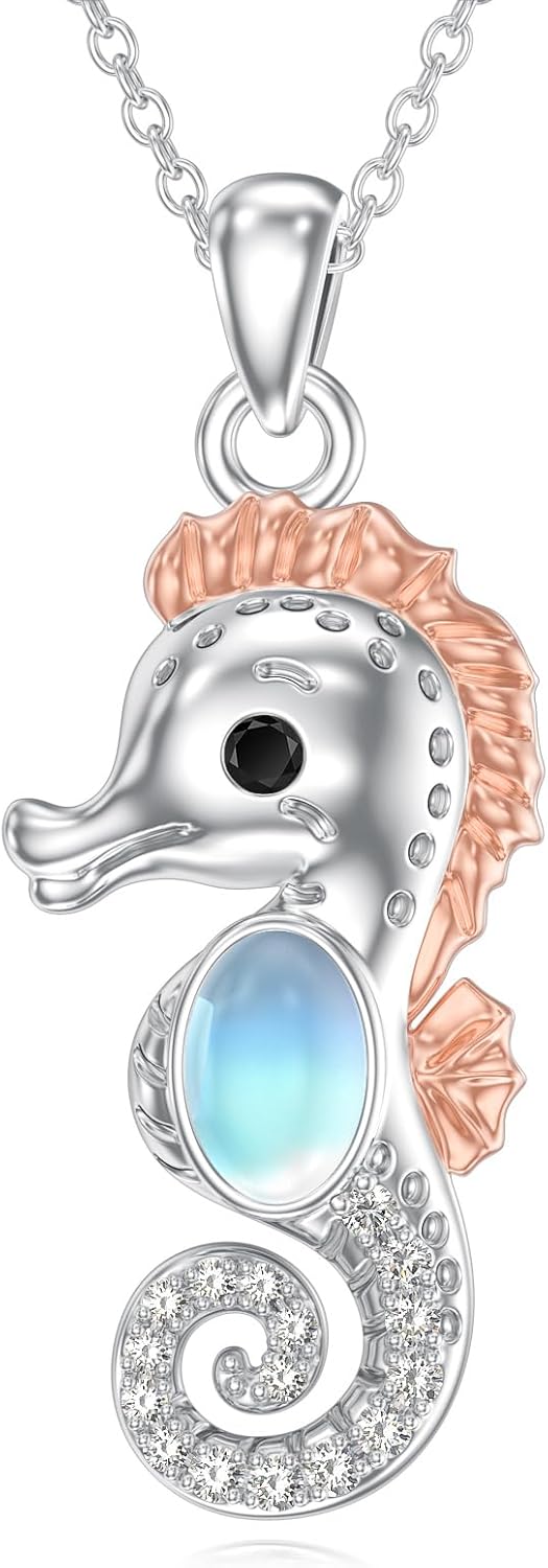 Moonstone Seahorse Necklace for Women 925 Sterling Silver Seahorse Pendant Moonstone Jewelry Birthday Gifts for Daughter