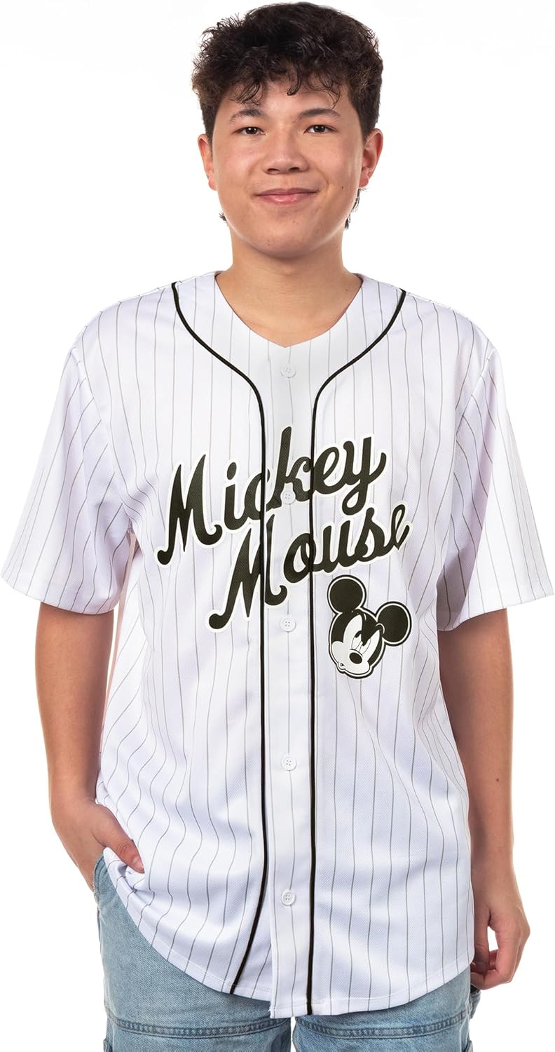 Disney Mickey Mouse Men's Baseball Jersey - Mens Classic Mickey Mouse, Donald Duck and Buzz Lightyear Baseball Jersey Shirt
