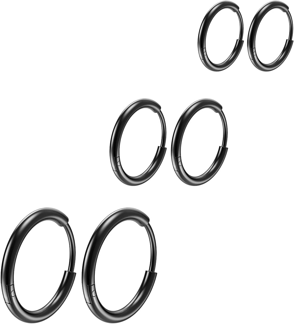 316L Surgical Stainless Steel Small Hoop Earrings 8mm 10mm 12mm Hypoallergenic Huggie Thin Hoop Earrings Helix Lobes Hinged Sleeper Earrings Men Women for Cartilage Piercings