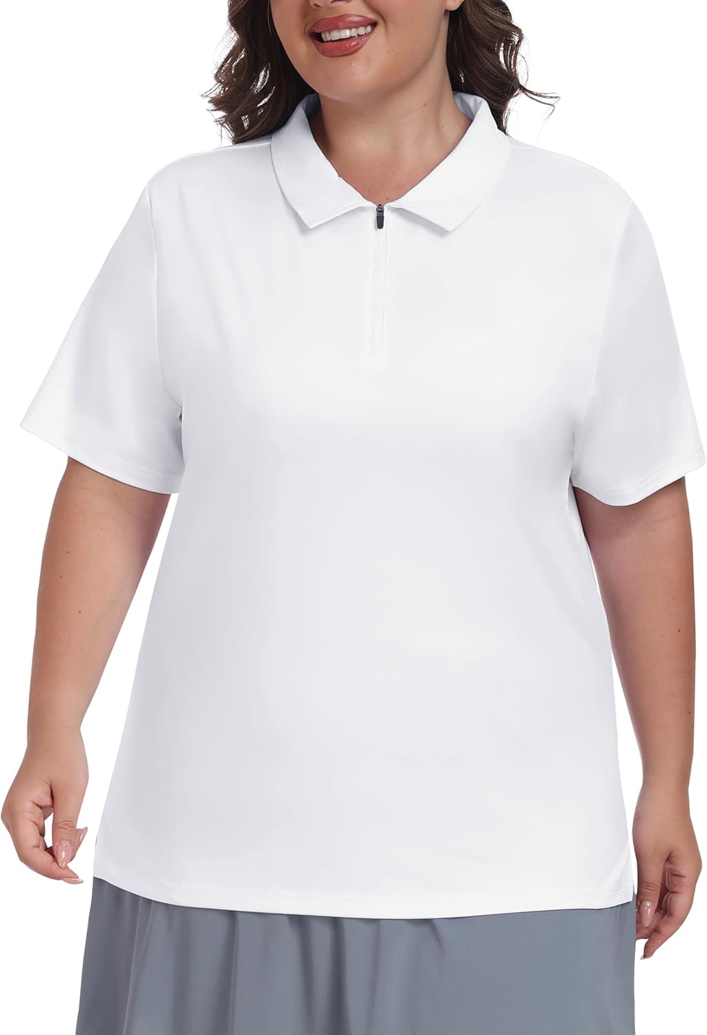 MoFiz Plus Size Golf Polo Shirts for Women Zip Up Short Sleeve Collared Tennis Workout Tops Sport Athletic Activewear XL-5XL