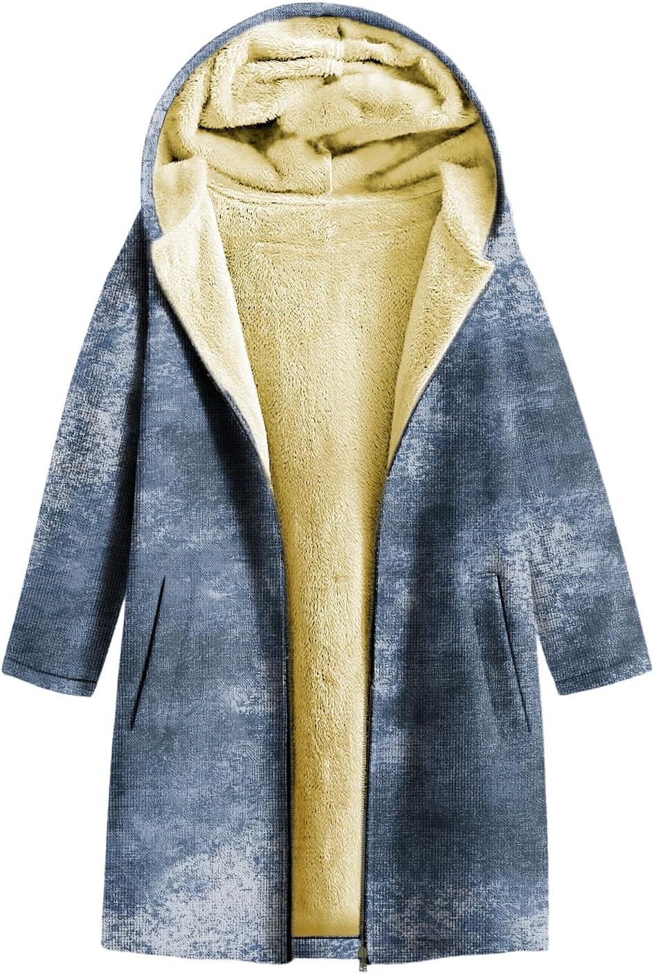 Fashion Womens Hooded Sweatshirts Casual Floral Print Fleece Lined Winter Jacket Warm Comfy Long Coat with Pocket