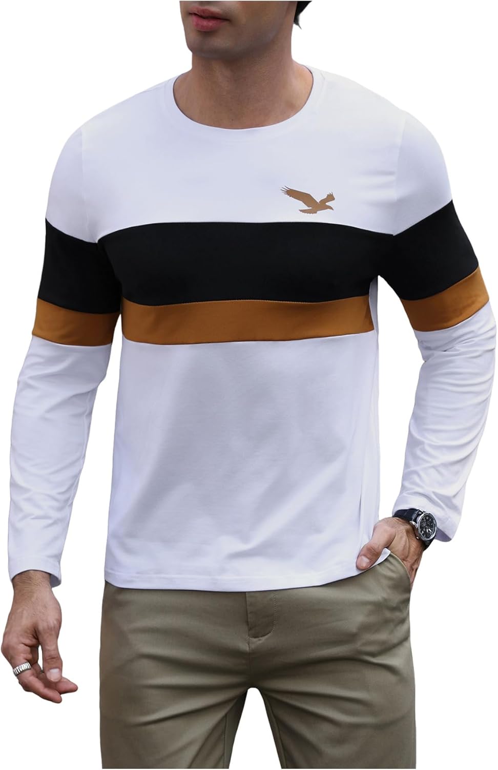 Men's Letter Graphic Long Sleeve Shirts Slim Fit Round Neck Casual Tee Tops Streetwear