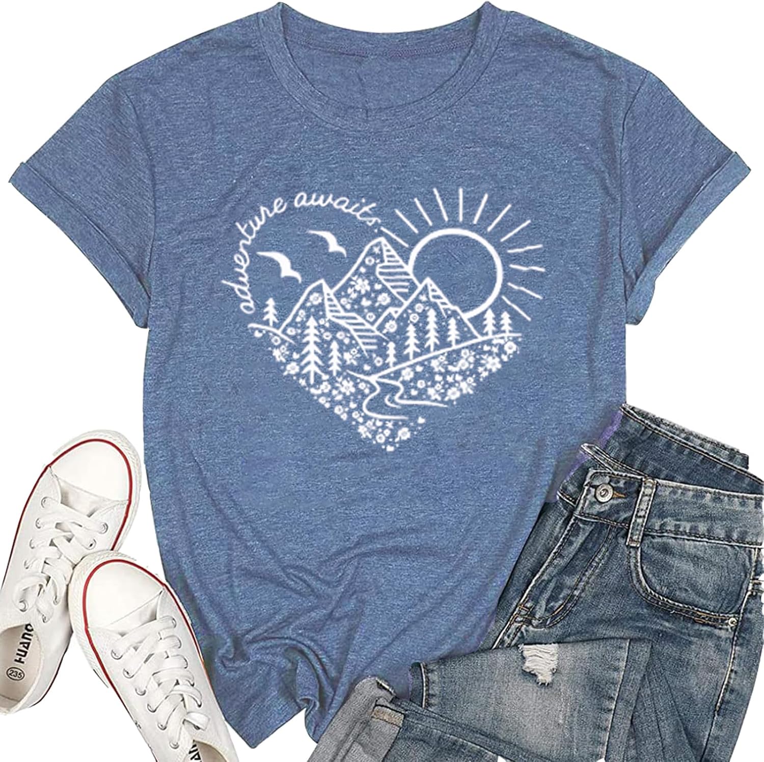 Adventure Awaits T-Shirt Women Outdoor Graphic Tee Shirt Nature Hiking Camping Tee Shirts Travel Shirt