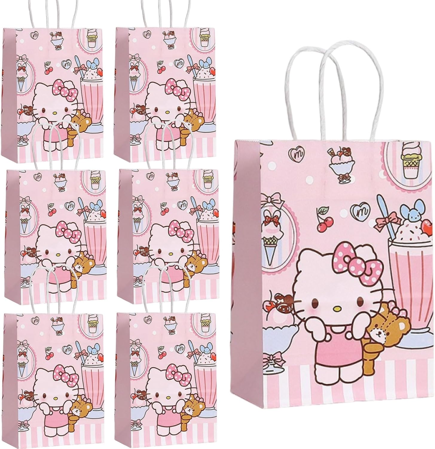 Cute Birthday Party Supplies, 12 Pcs Party Favor Bags, Candy Goodie Treat Bags with Handle, Cartoon Birthday Party Decorations (A)