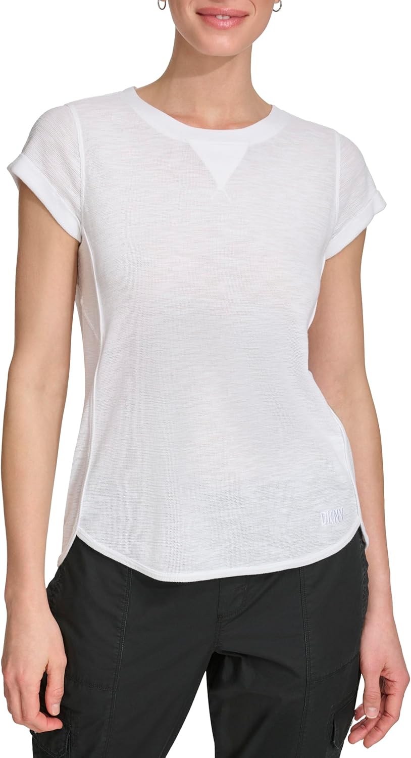 DKNY Womens Short Sleeve Mini Slub Waffle T-Shirt