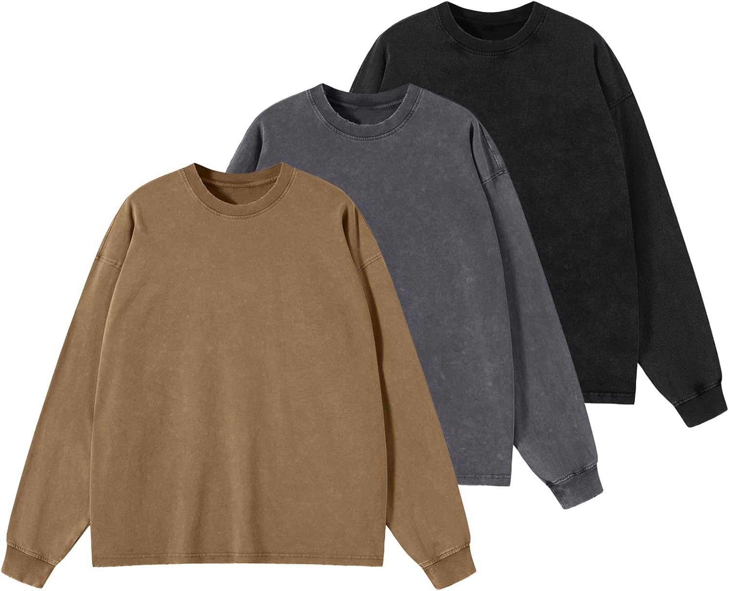 Men's Oversized Vintage Long Sleeve T-Shirts Acid Wash Soft Comfort Fit Crewneck Sweatshirt