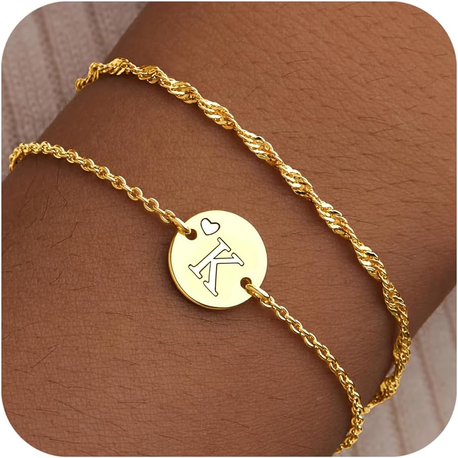 Gold Initial Heart Bracelets for Girl Women Trendy, Layered Dainty Initial Gifts Personalized Disc Letter Charm A-Z Bracelets for Teen Girl Women Jewelry Gifts