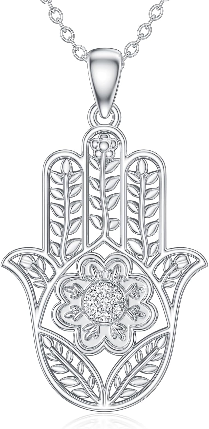 Diamond Hamsa Hand Necklace for Women 925 Sterling Silver Hand of Fatima Pendant Necklace Lucky Hamsa Jewelry Gifts for Mom Wife Daughter Girlfriend Sister Friend