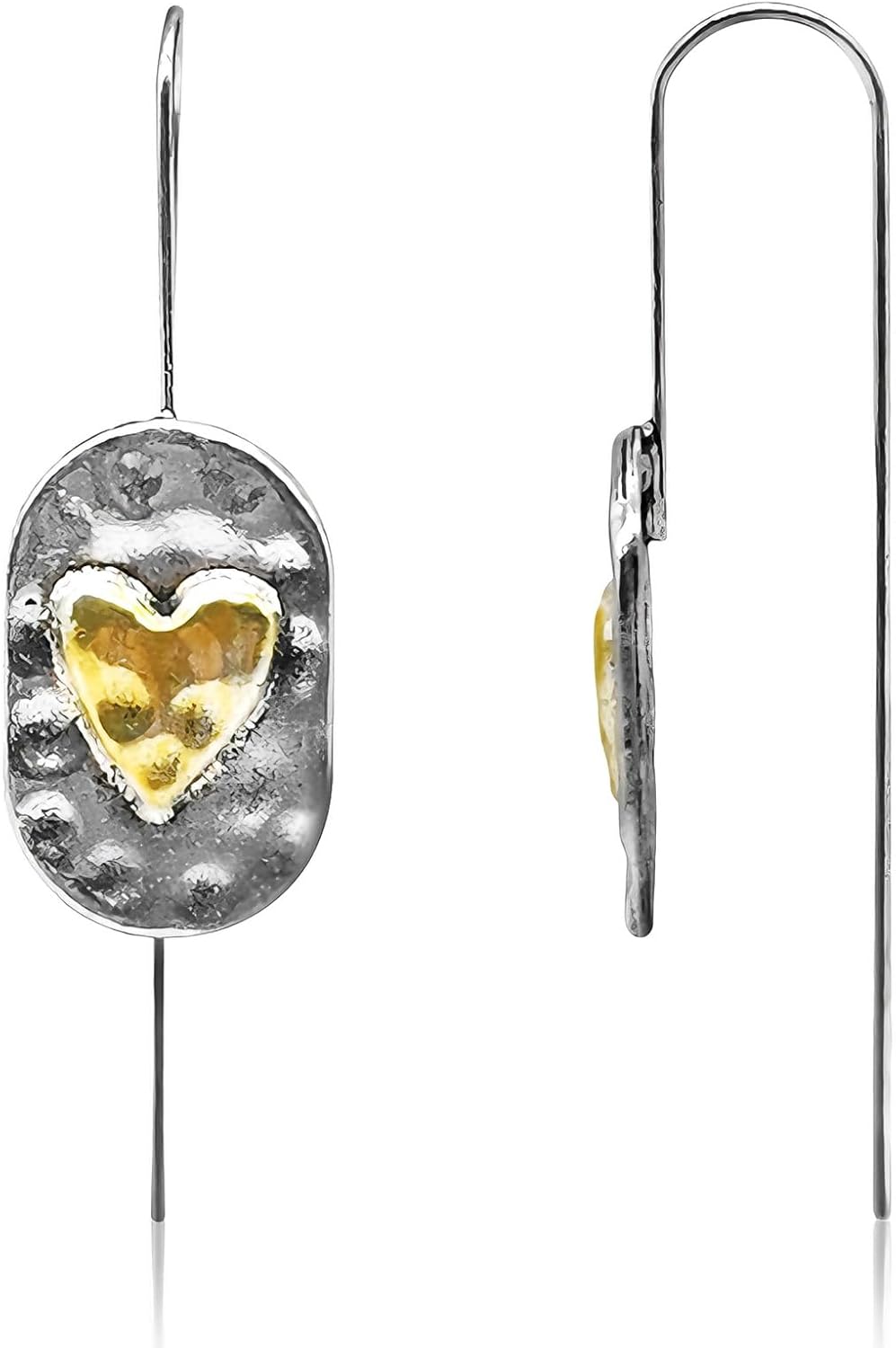 Heart Earrings for Women, Boho Vintage Dangle Drop Earrings with Two-Tone Gold & Silver Heart Charm,Romantic Valentine’s Day Gift & Everyday Statement Jewelry