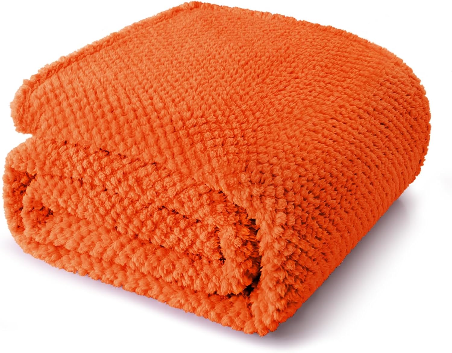 Whale Flotilla King Size Fuzzy Fleece Blanket, Fluffy Warm Soft Jacquard Bed Blankets for All Season, Lightweight and Cozy, 90x104 Inch, Burnt Orange