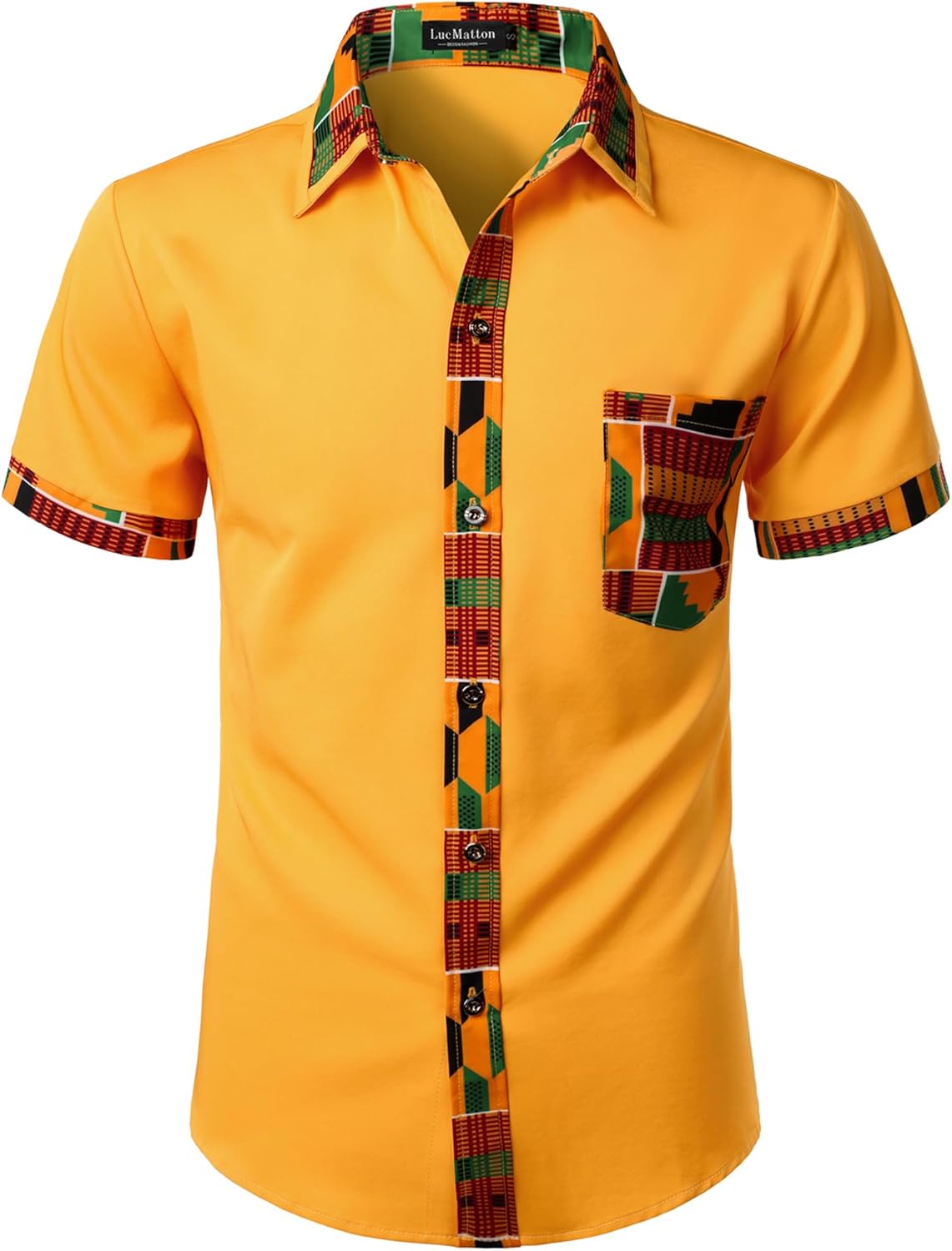 LucMatton Men's Kente Print Short Sleeve Button Down Dress Shirt African Attire Tribal Graphic Dashiki Shirts