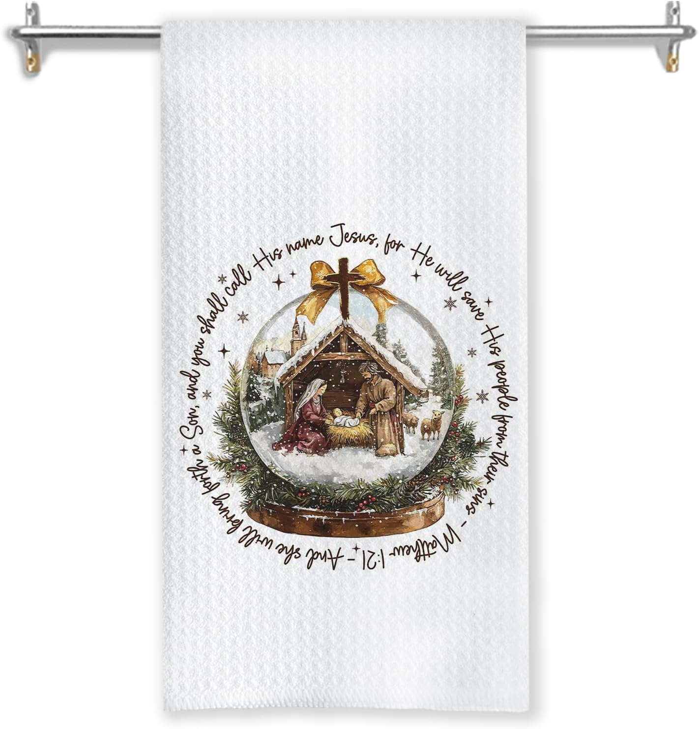 Christmas Nativity Christian Kitchen Towels, Matthew 1:21 Bible Verse Decor Dish Tea Towels for Kitchen, Winter Holiday Religious Xmas Hand Towel for Bathroom Decor, 16x24 Inches