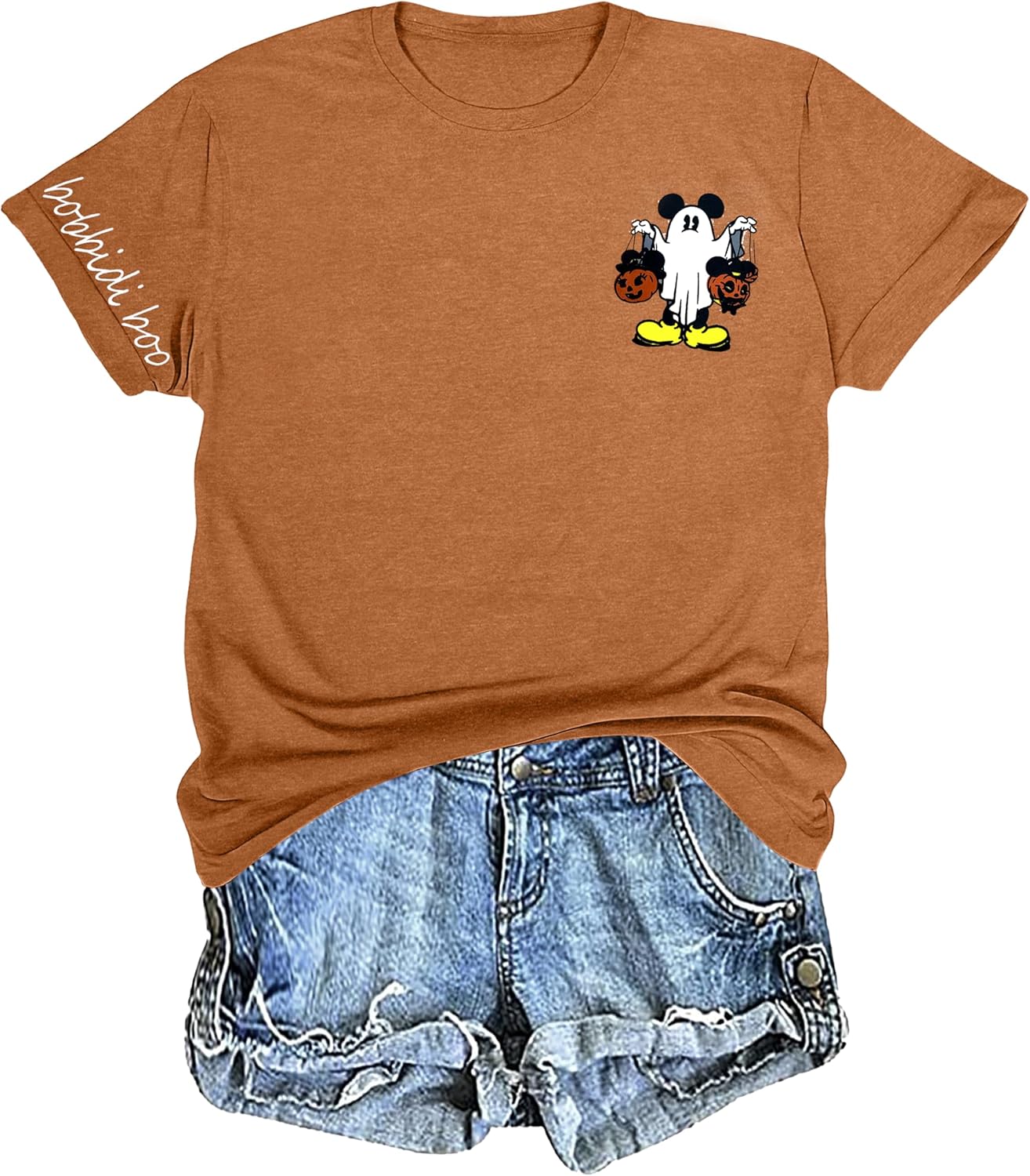 Halloween Shirts for Women Magic Spooky Season Tshirt Cute Halloween Ghost Tee Fall Casual Short Sleeve Tops Brown