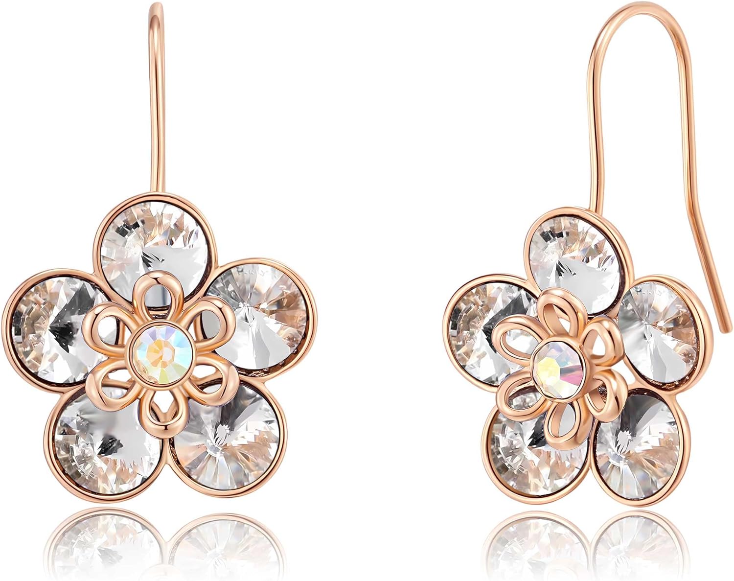 Austrian Crystal Flower Dangle Drop Earrings for Women 14K Gold Plated Hypoallergenic Hook Earrings Jewelry