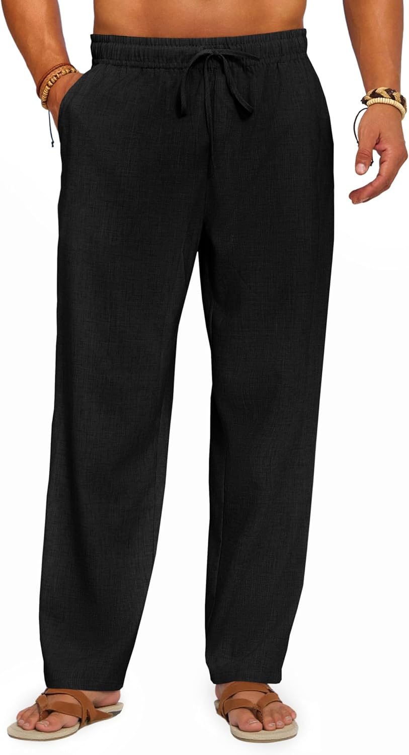 Runcati Mens Casual Linen Pants Elastic Waist Drawstring Summer Beach Pants Lightweight Loose Fit Yoga Trousers