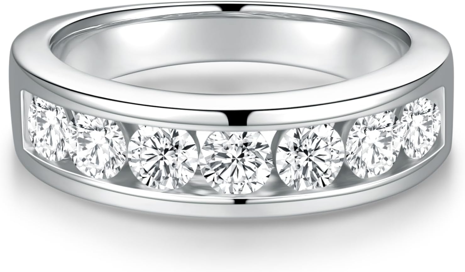 Men Moissanite Ring Moissanite Eternity Wedding Band Ring, 1.4cttw D Color VVS1 Lab Diamond Channel Set, S925 Silver with 18K White Gold Plated Moissanite Wedding Engagement Anniversary