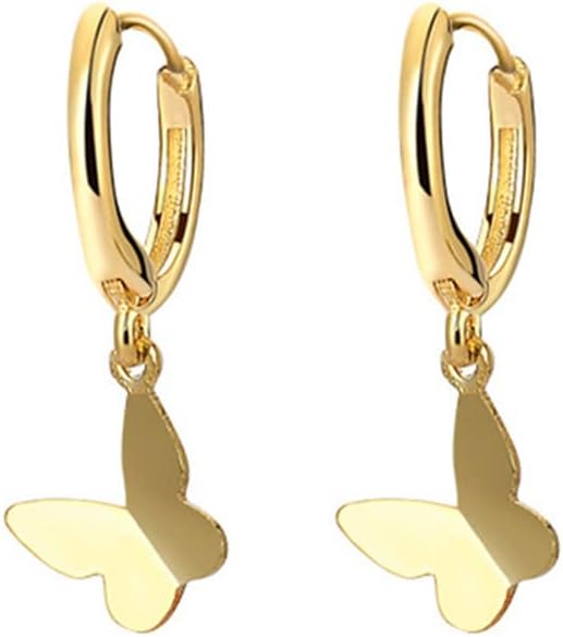 Tiny Butterfly Dangle Hoop Earrings for Women Girls 925 Sterling Silver Hypoallergenic Minimalist Small Charms Drop Dangling Huggie Hoops Cartilage Fashion Cute Jewelry Dainty Gifts