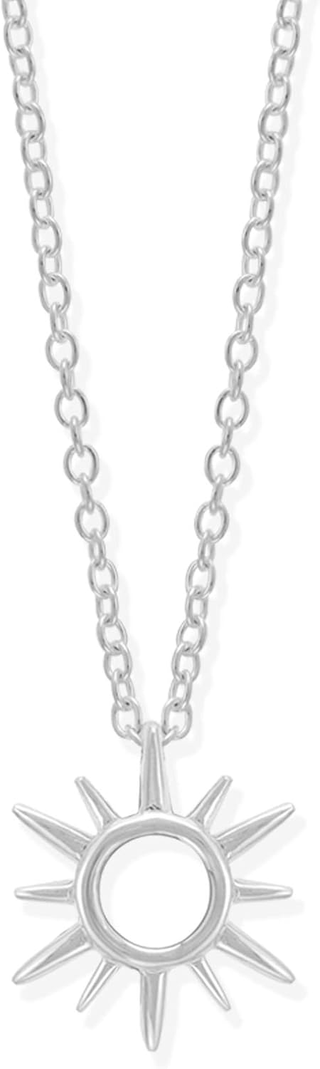 Boma Jewelry Sterling Silver Sunburst Sun Open Circle Necklace, 18 Inches