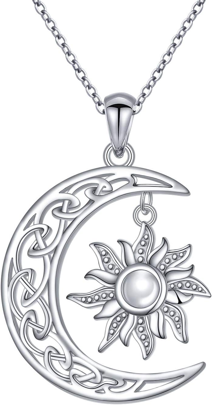 FLYOW S925 Sterling Silver Crescent Moon Pendant Necklace for Women Birthday Gift