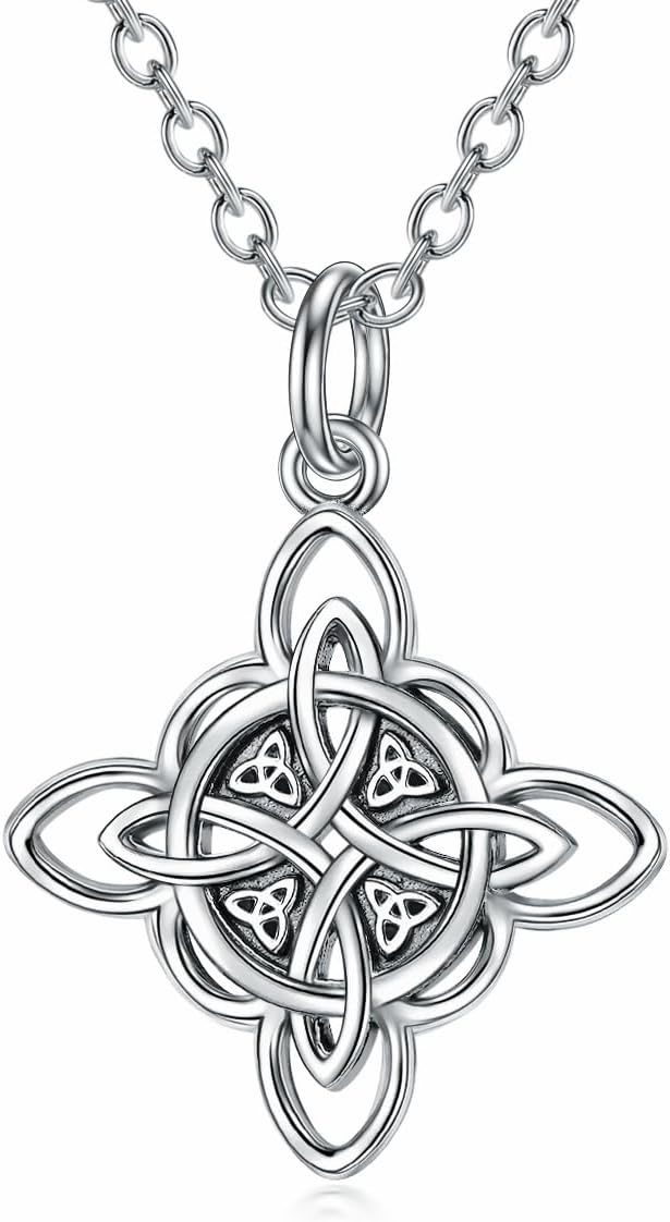 YFN Witch Knot Birthstone Necklaces Celtic Triquetra Knot 925 Sterling Silver Pendant Necklace for Women