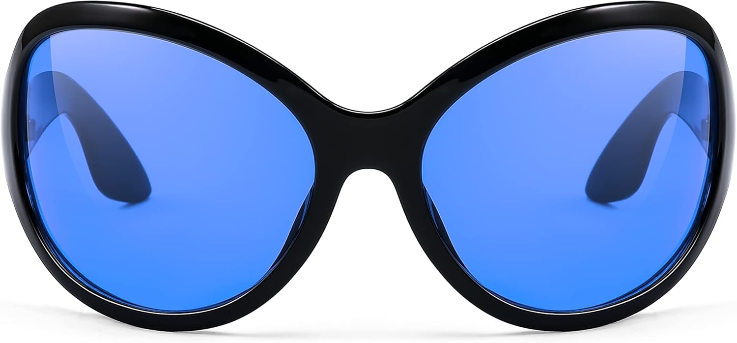 - 【Super Vision】: These oval sunglasses provide great coverage around the eyes. Oval sunglasses block the wind well These glasses also have aerodynamic properties and are much more curved than regular sunglasses. With these large lenses, you won't notice the frame in your field of vision when you look at something.